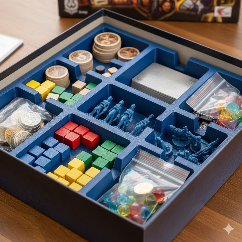 - Bagging Components: Use small resealable bags for dice, meeples, and tiles to avoid loose pieces.